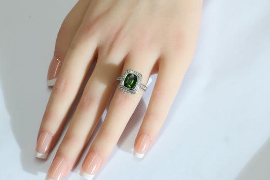 Grüner Turmalin (3.13ct) Ring in 18 Karat Weißgold mit Diamanten