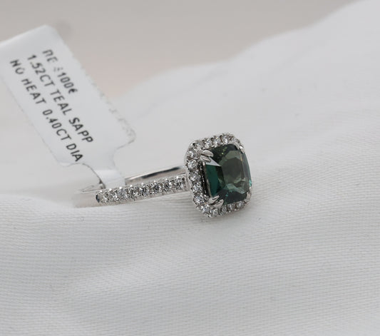 Teal Saphir Ring in 18 Karat Weißgold mit Diamanten