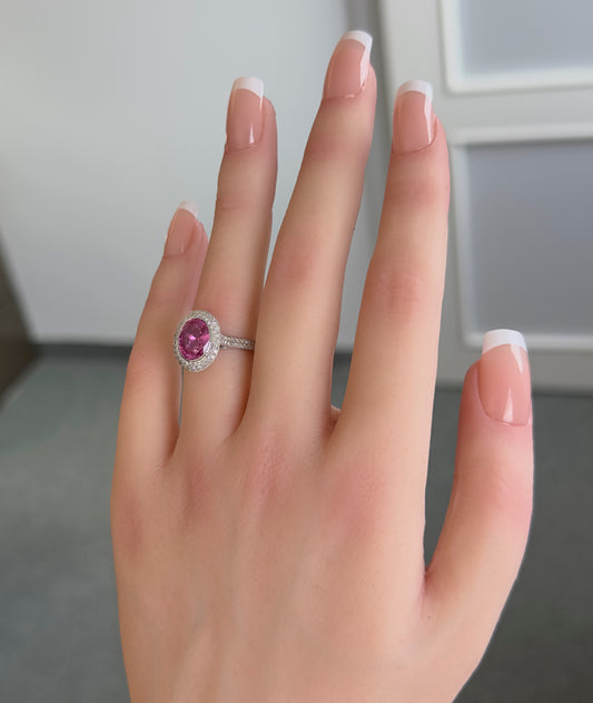 Pinker Saphir (No Heat, 3.02ct) Ring in 18 Karat Weißgold mit 1.13ct Diamanten