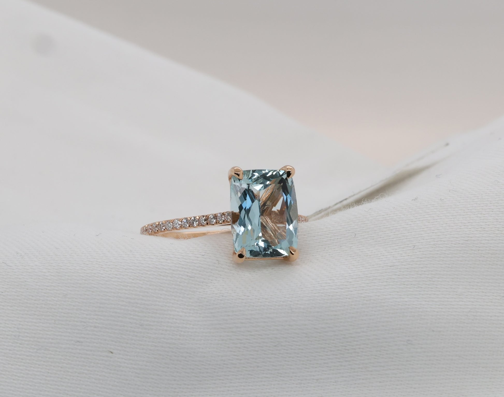 Aquamarine ring in 18 Karat Rosegold with diamonds