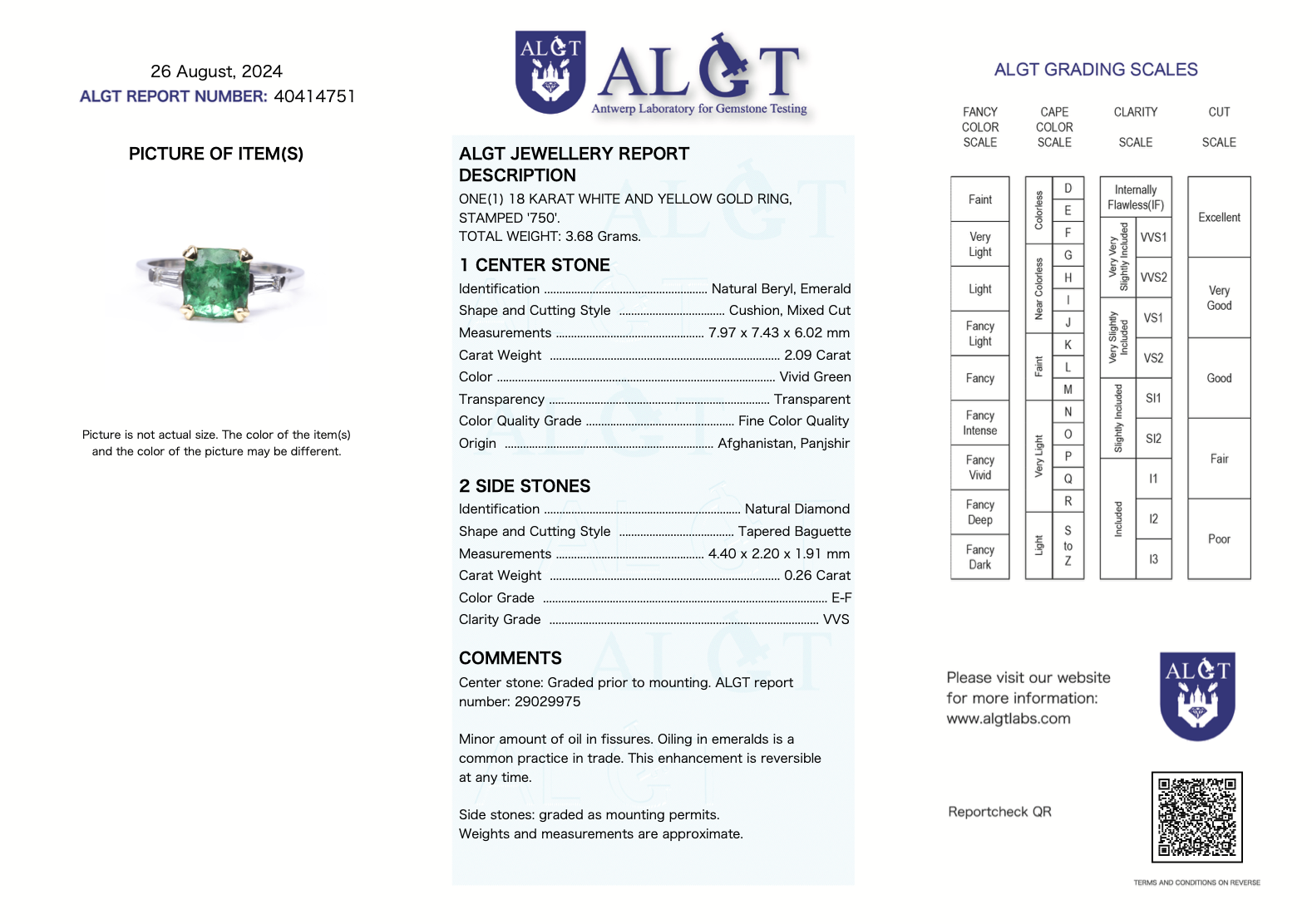 Zertifizierung: ALGT Antwerpen Zertifikat im Kaufpreis enthalten.