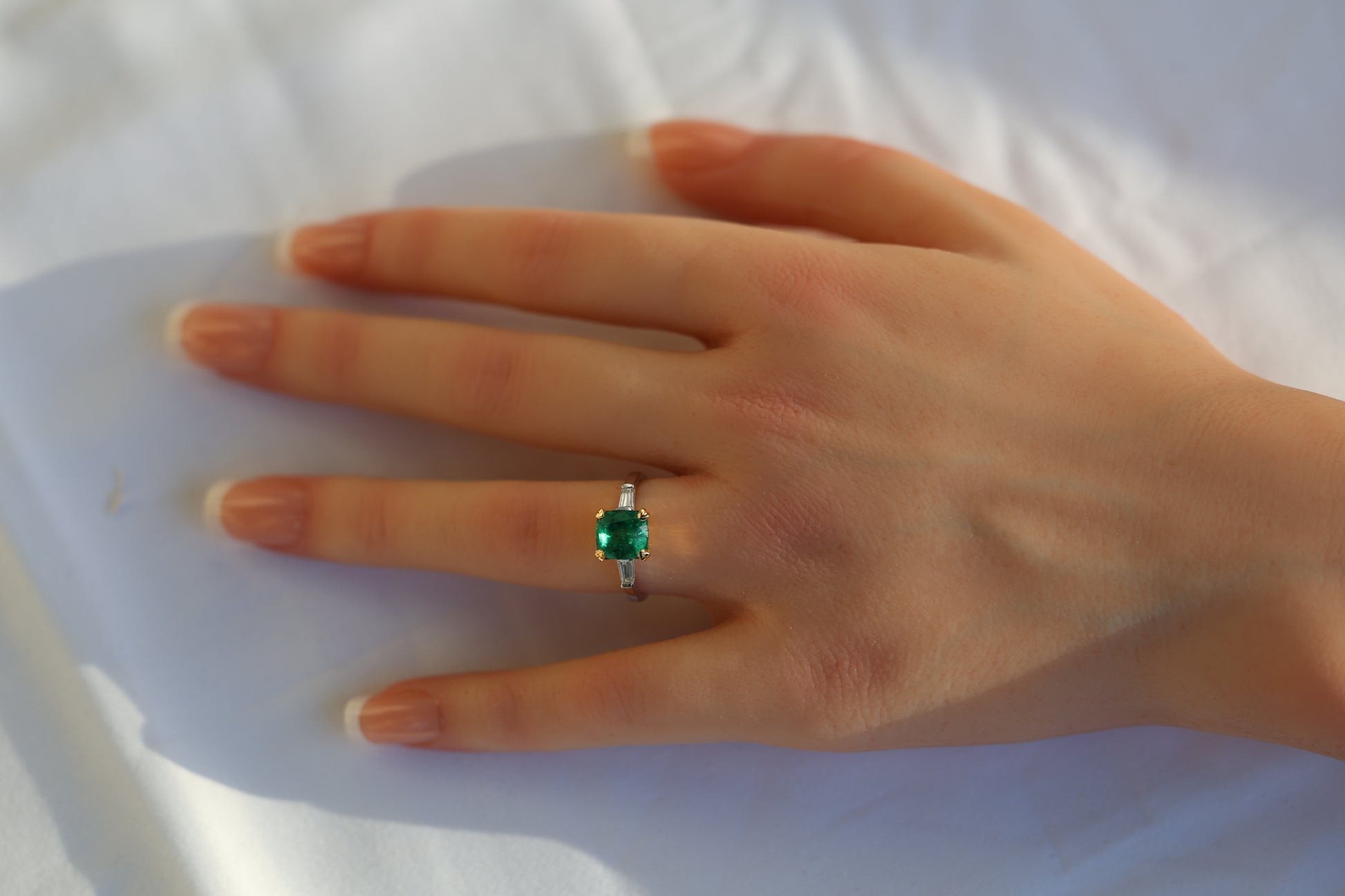 zertifizierter natürlicher afghanischer Smaragdring mit VVS Baguette Diamanten – feine Farb-Qualität in 18 Karat Gold