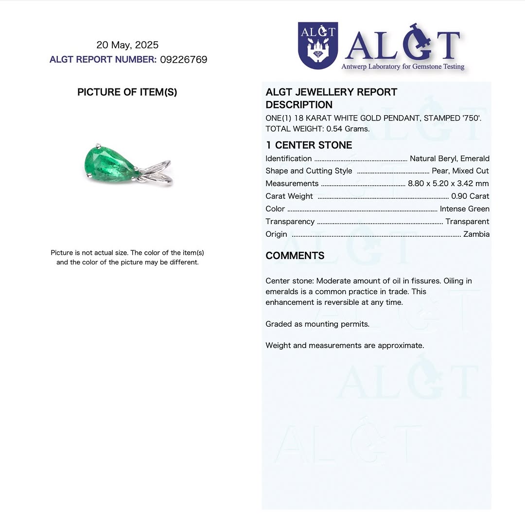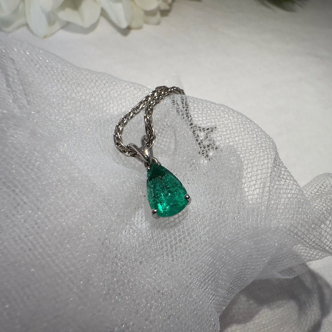 zertifizierter natürlicher sambischer Smaragdanhänger – 18 Karat Weißgold