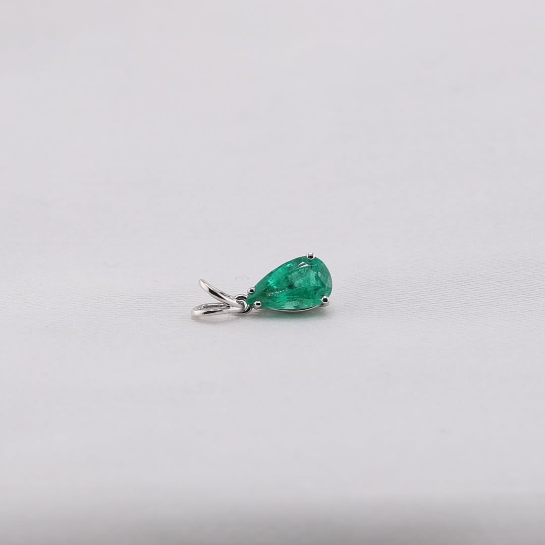 Entdecken Sie die außergewöhnliche Schönheit dieses maßgefertigten Anhängers mit einem natürlichen Smaragd aus Sambia. Er besticht durch einen prächtigen Smaragd von 0.90 ct mit atemberaubender Farbe und wunderschönem Glanz, gefasst in elegantem 18-Karat Weißgold.