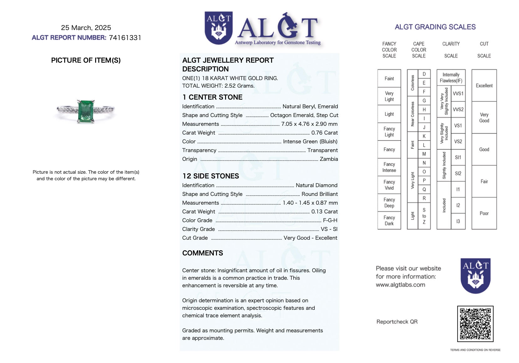 Zertifizierung: ALGT Antwerpen Zertifikat im Kaufpreis enthalten.