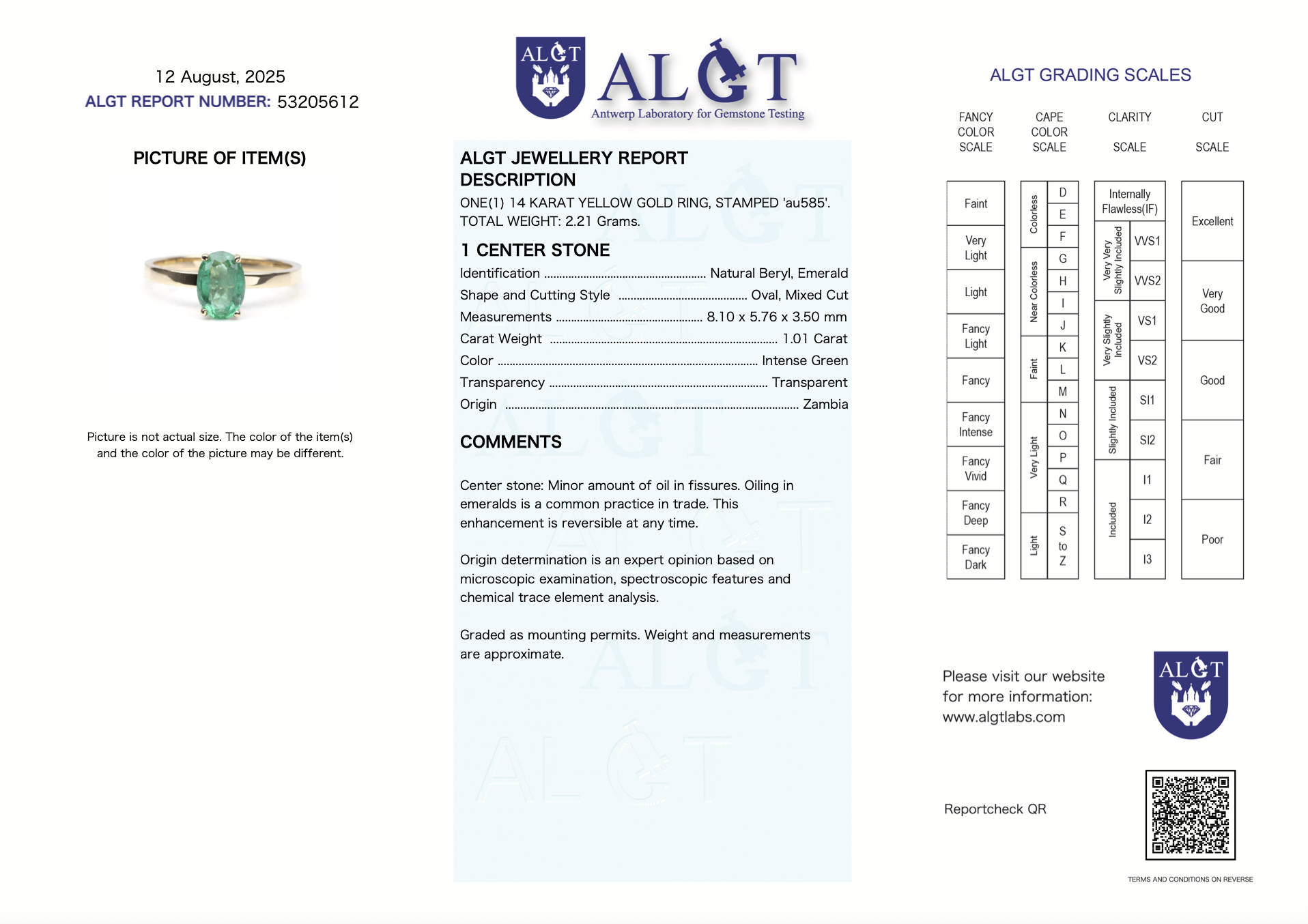 Zertifizierung: ALGT Antwerpen Zertifikat im Kaufpreis enthalten.
